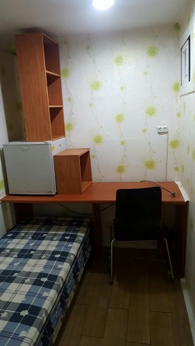 최신식 고시원 책상과 하이팩의자 침대 옷봉 소형냉장고 초고속인터넷 랜선 설치