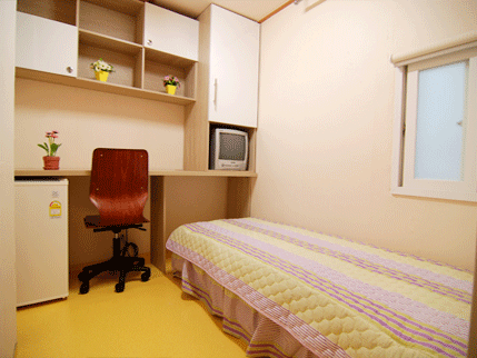 고급 책상, 의자, 책장, 케이블 TV, 중형 냉장고, 초고속 인터넷 전용선(무료).
