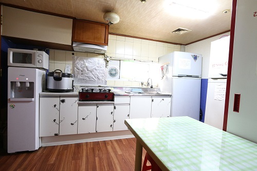 휴게실에 정수기,싱크대,가스레인지가 있어 취사 가능,밥은 제공됨.대형 냉장고2대,세