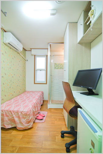 *모든 방마다 최신형20인치LCD TV(모니터 겸용), 75리터냉장고.