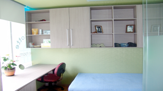 고급형 책상,의자,옷장,서랍식침대,최고급 양면스프링 매트,책장,냉 난방 시스템.창문, 샤워실 (샤워부스,세면대 ,화장실)