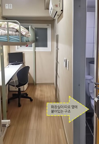 *샤워실, 화장실, 2층침대, 책걸상,옷장