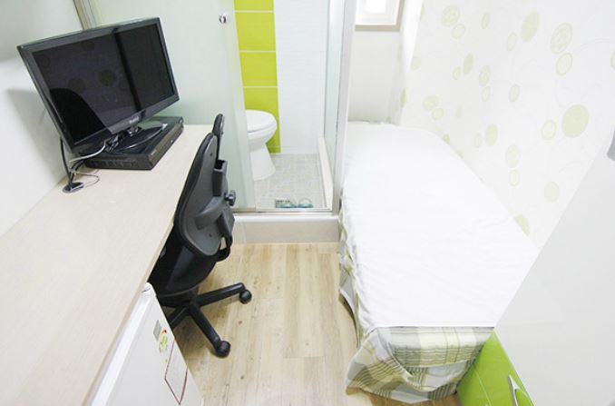 각방에 ALC 벽돌 방음,침대,옷장,모니터겸 tv,냉장고,화재감지기,스프링쿨러,각방소화기,휴대용조명등,1실1인터넷선이 깔려 있어 인터넷이 잘 터집니다.