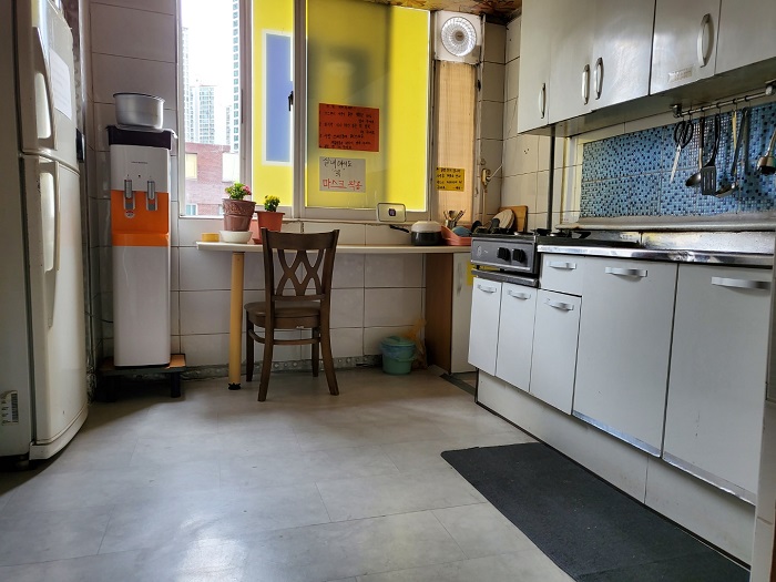 - 넓은주방에 대형냉장고,정수기,가스렌지,전자렌지,주방도구가 비치되어있습니다.