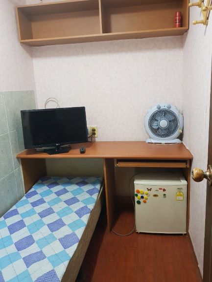 각방 침대 (온돌도 가능), 책상, 옷장, 옷봉, tv, 개인냉장고, 인터넷, 이불, 베게 무